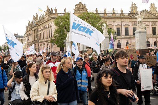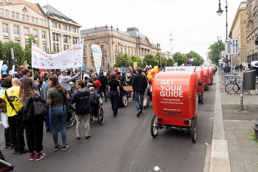 Fast 2000 Menschen kamen am Sonntag, den 5. Mai, zusammen, um gemeinsam für Barrierefreiheit und die gleichberechtigte Teilhabe von Menschen mit Behinderung zu demonstrieren. Organisiert wurde die Demo mit anschließender Kundgebung vom VdK Berlin-Brandenburg gemeinsam mit weiteren Bündnispartnern.